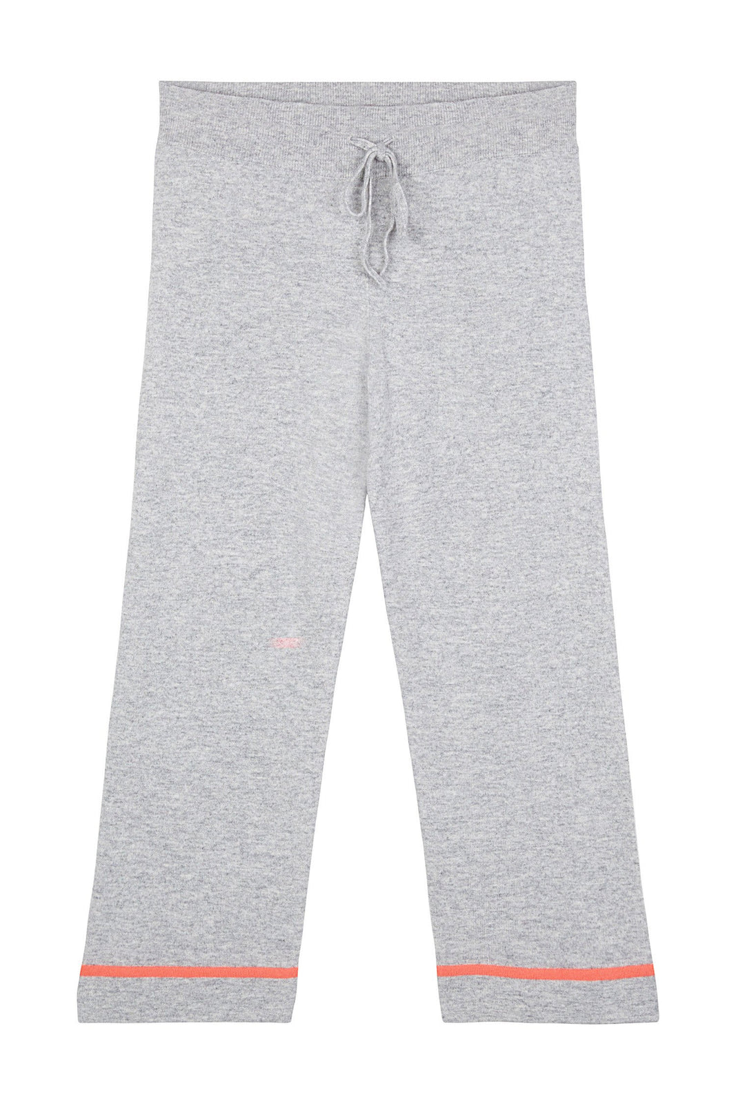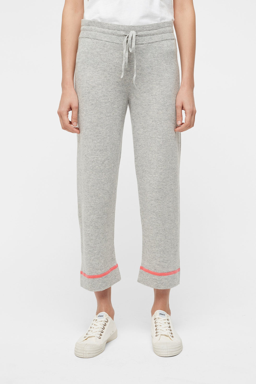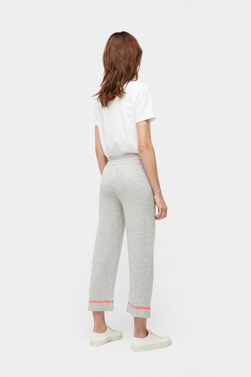 The epitome of casual elegance, this 100% cashmere grey cropped lounge pants is detailed with a contrast stripe in cocktail pink to the hem.