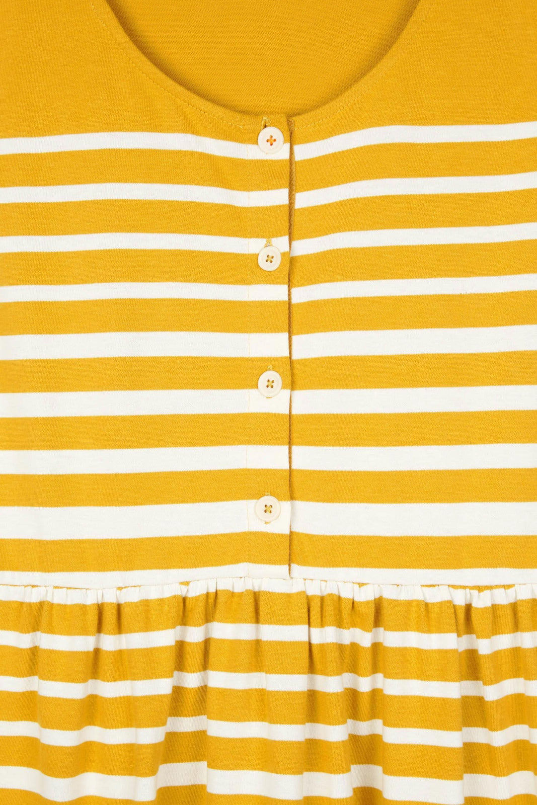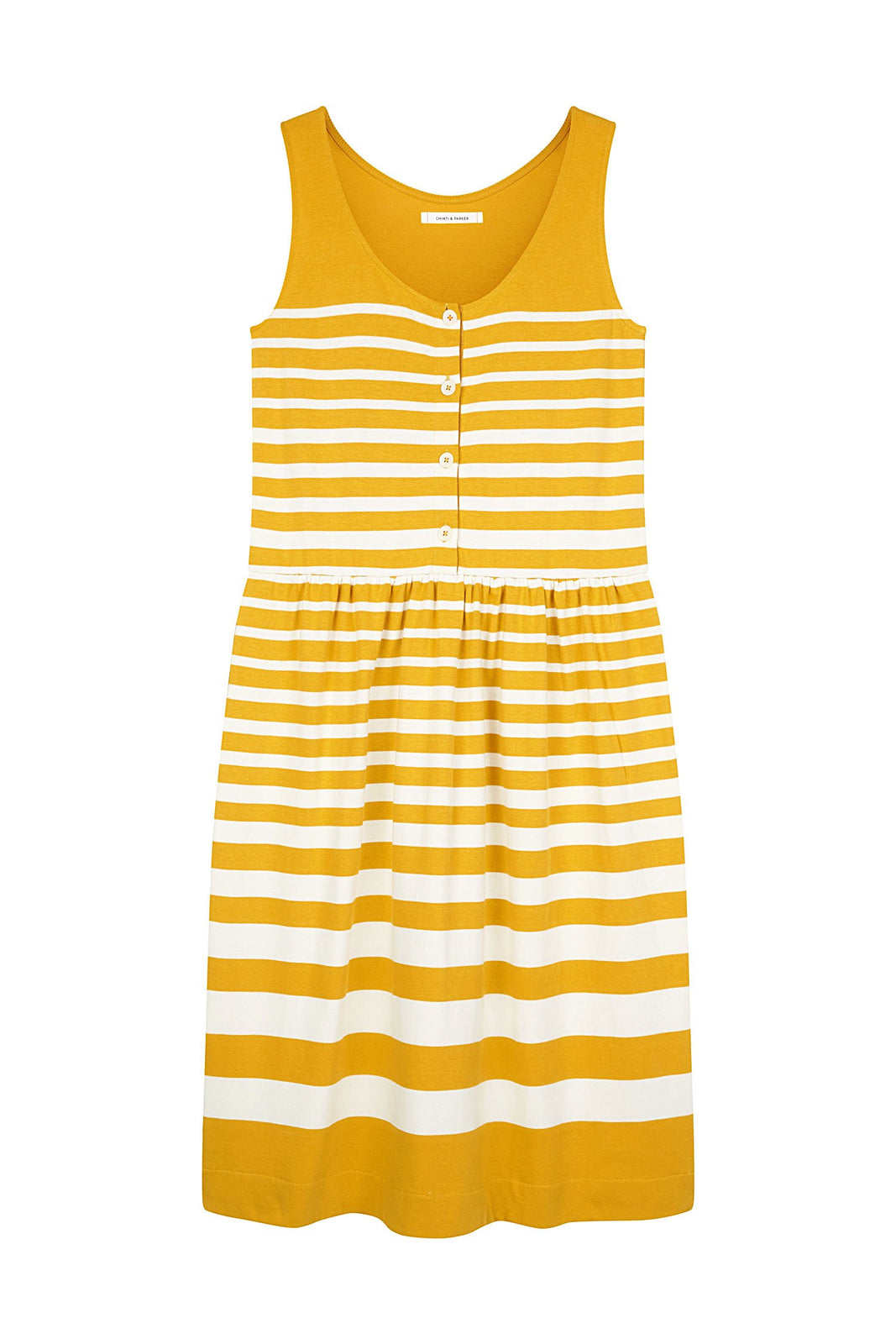 In a sunny colour palette, this relaxed-fit sleeveless dress comes emblazoned in graphic stripes reminiscent of the beach umbrellas in the South of France.