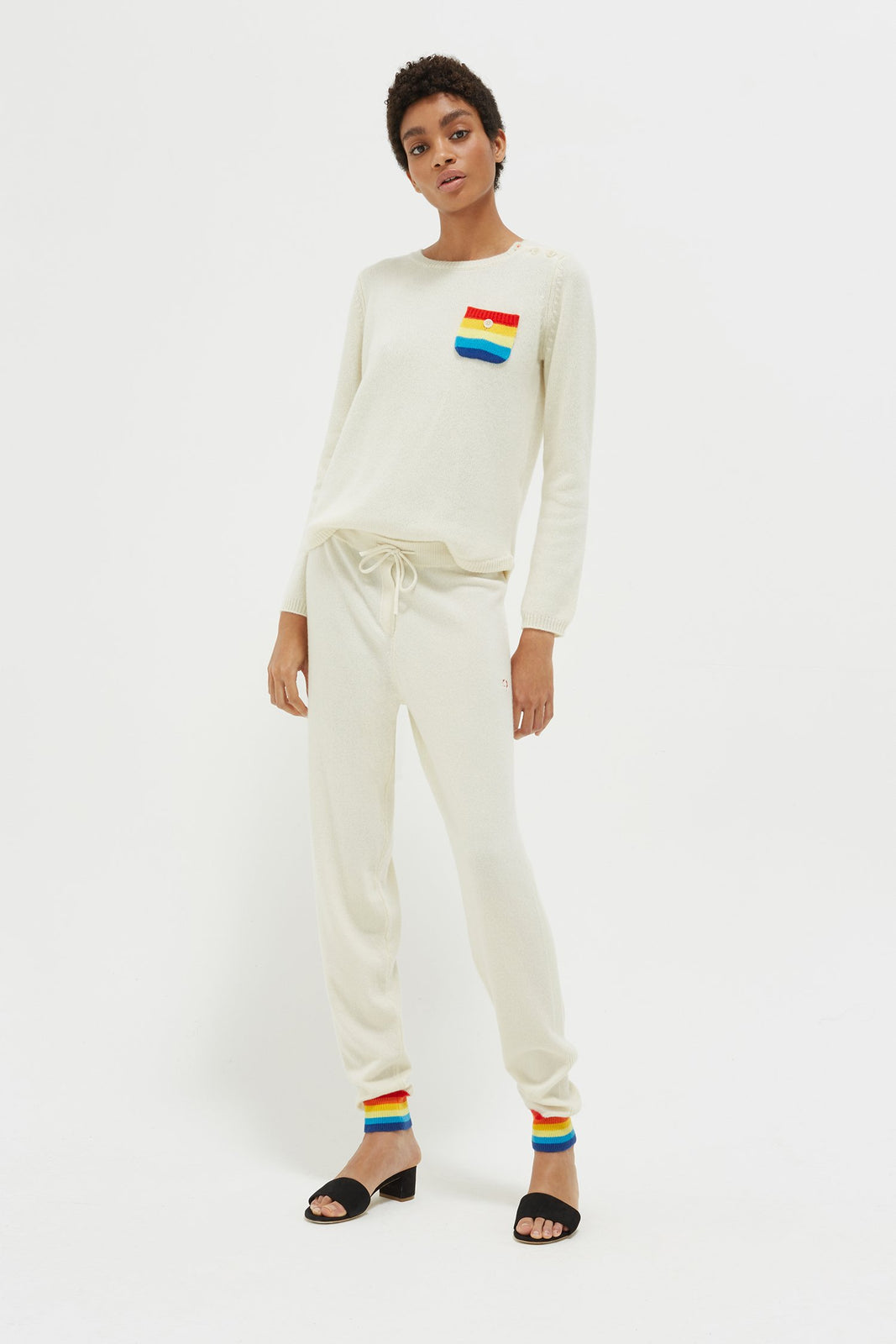 The Cream Striped Cuff Cashmere Track Pants is a classic.