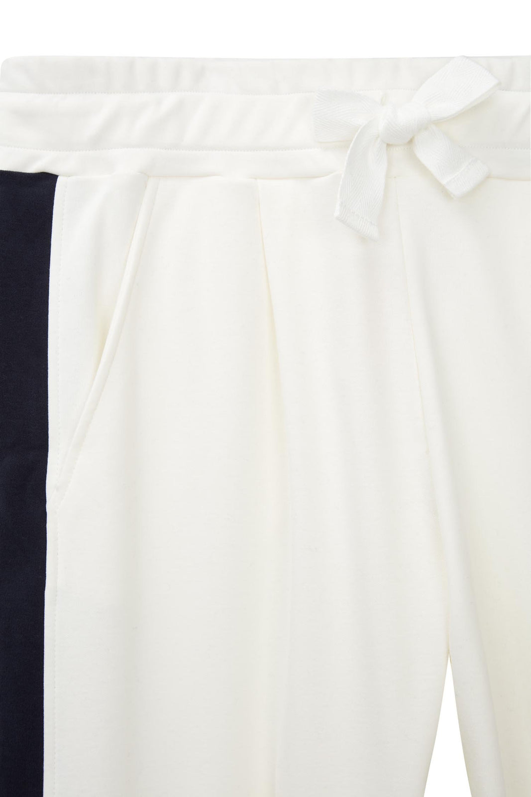 These ivory 100% cotton track pants are crafted for a slim silhouette with an elasticated drawstring waist and slightly cropped cuffs. Contrasting white and red stripes run along the outer edges for an unexpected edge.