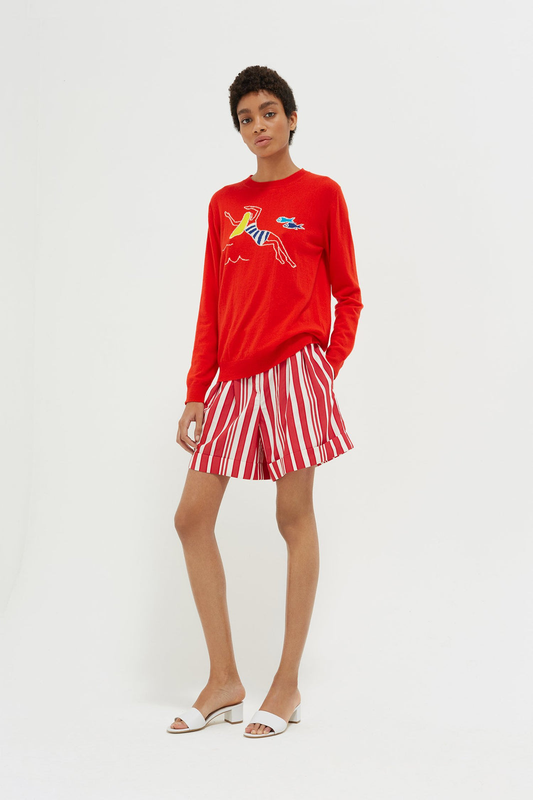 The Red Swimmer Cashmere Sweater is a classic.