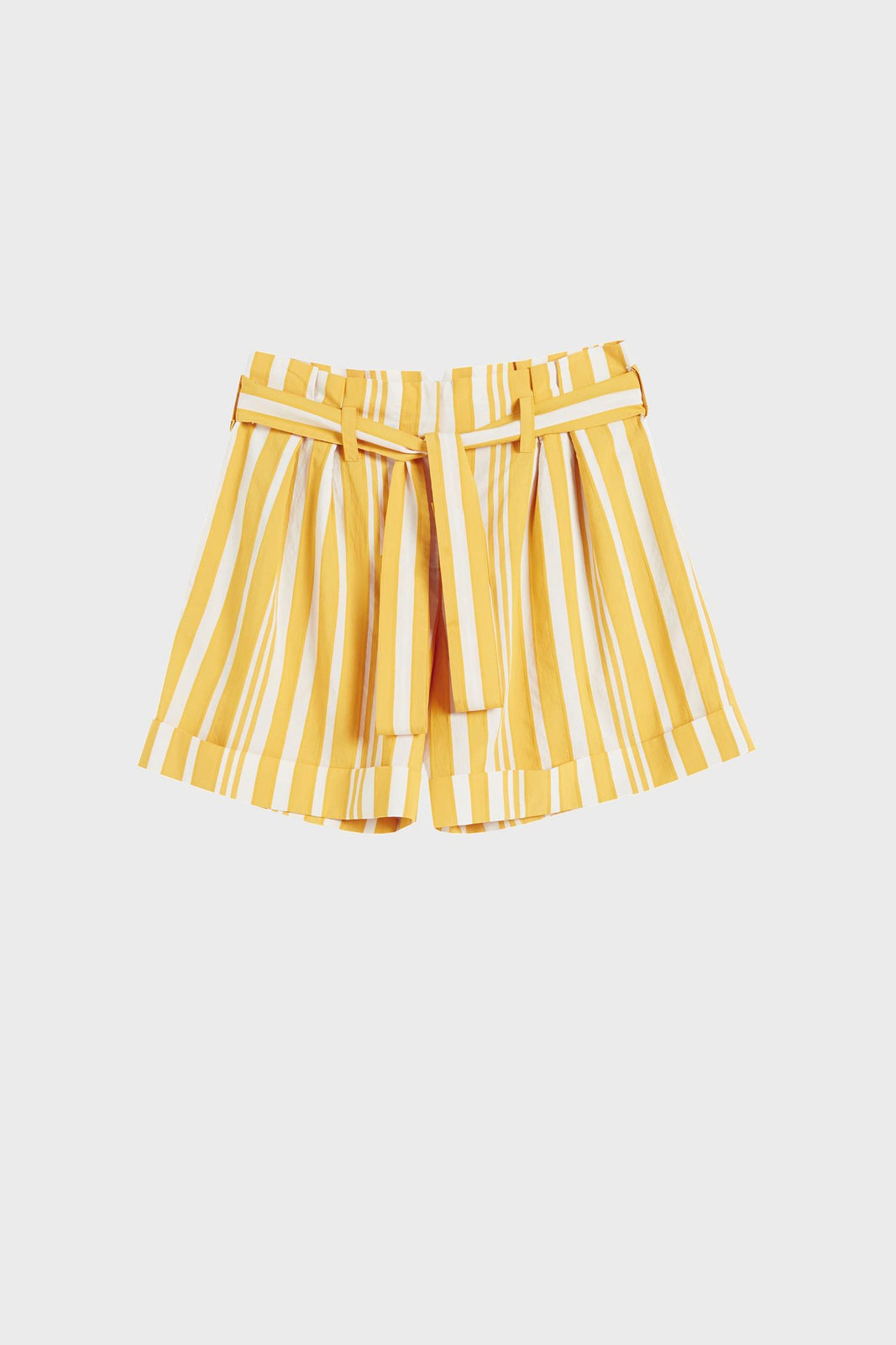 No summer wardrobe is complete without a great pair of shorts. In line with this season’s nautical theme, these tailored ones are made from a lightweight viscose jacquard, interwoven with yellow and ivory parasol stripes. They are designed to sit comfortably on the waist, with a coordinating tie belt to adjust the fit. Tuck in the coordinating blouse for an effortlessly elegant look for sun-kissed days.