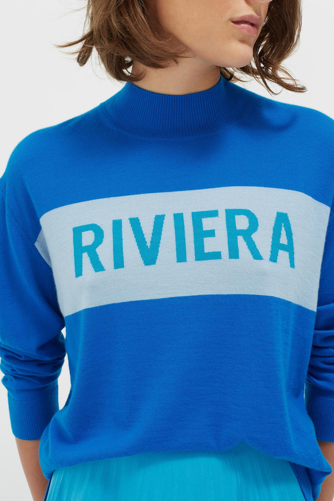 The Royal Blue Riviera Cashmere Polo Neck Sweater is a classic.