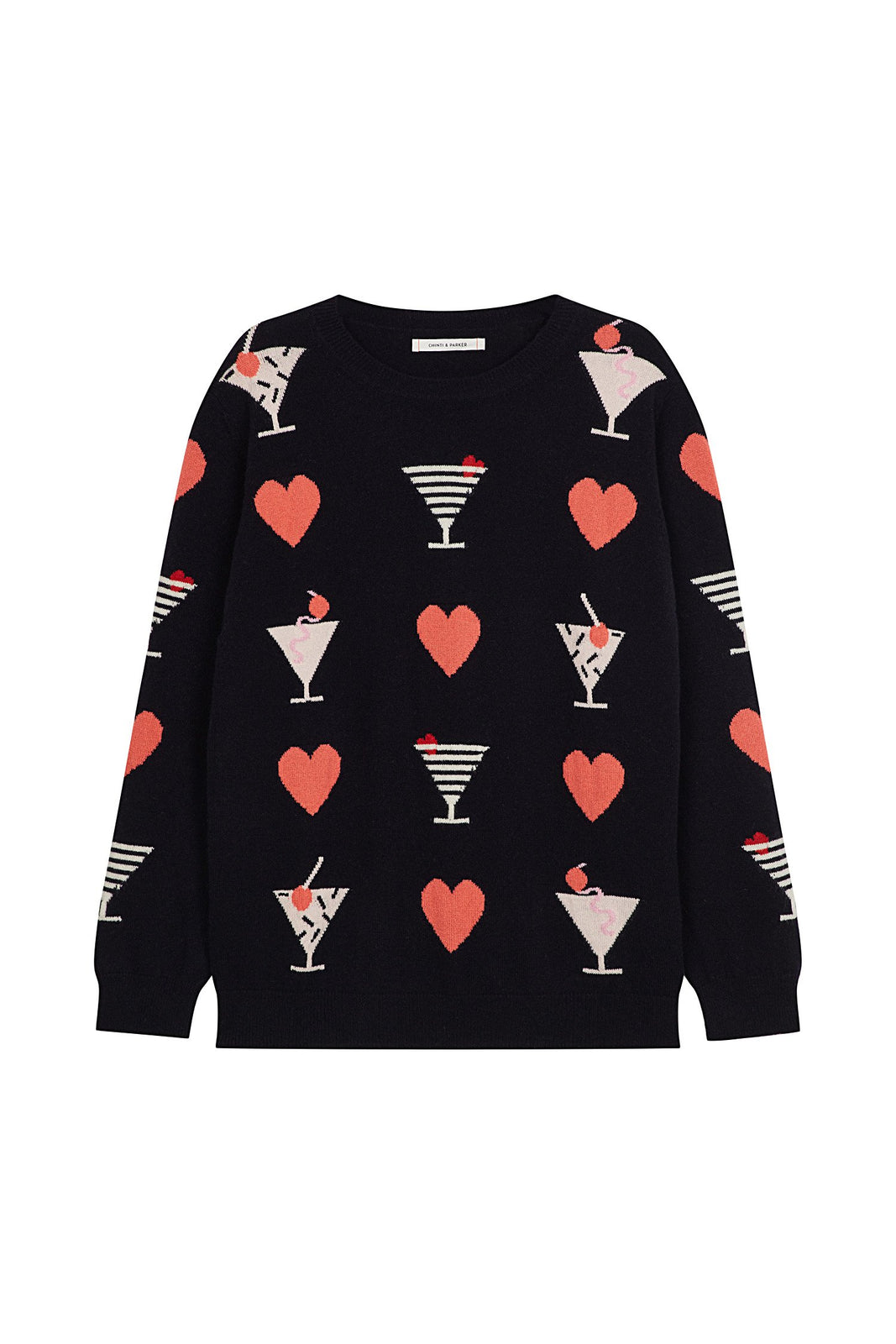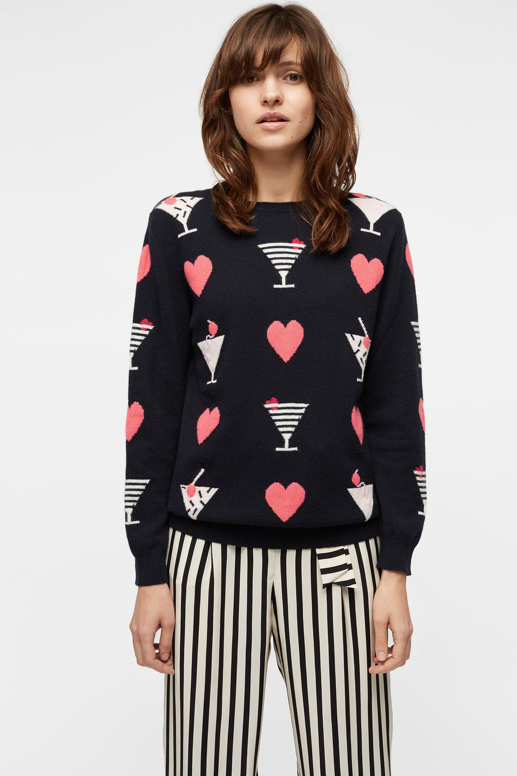 Tapping into SS18's hedonistic French Riviera mood, this regular-fit statement navy cashmere sweater is detailed with all-over heart and cocktail intarsia.
