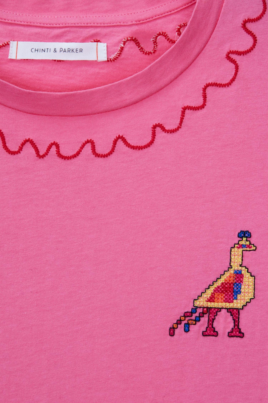 This lightweight pink cotton T-shirt is an easy way to wear the season's Mexican spirit. It's shaped for a classic fit with a round neck - note the stitch detail - and finished with a cross-stitched Aztec animal motif at the chest.