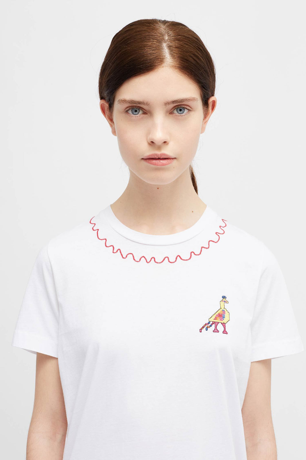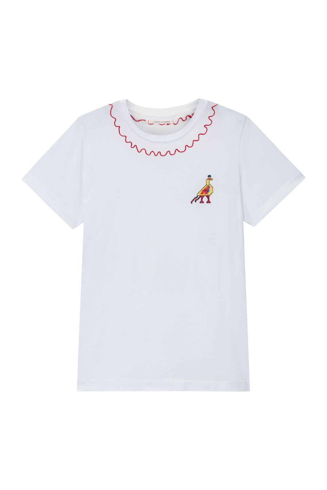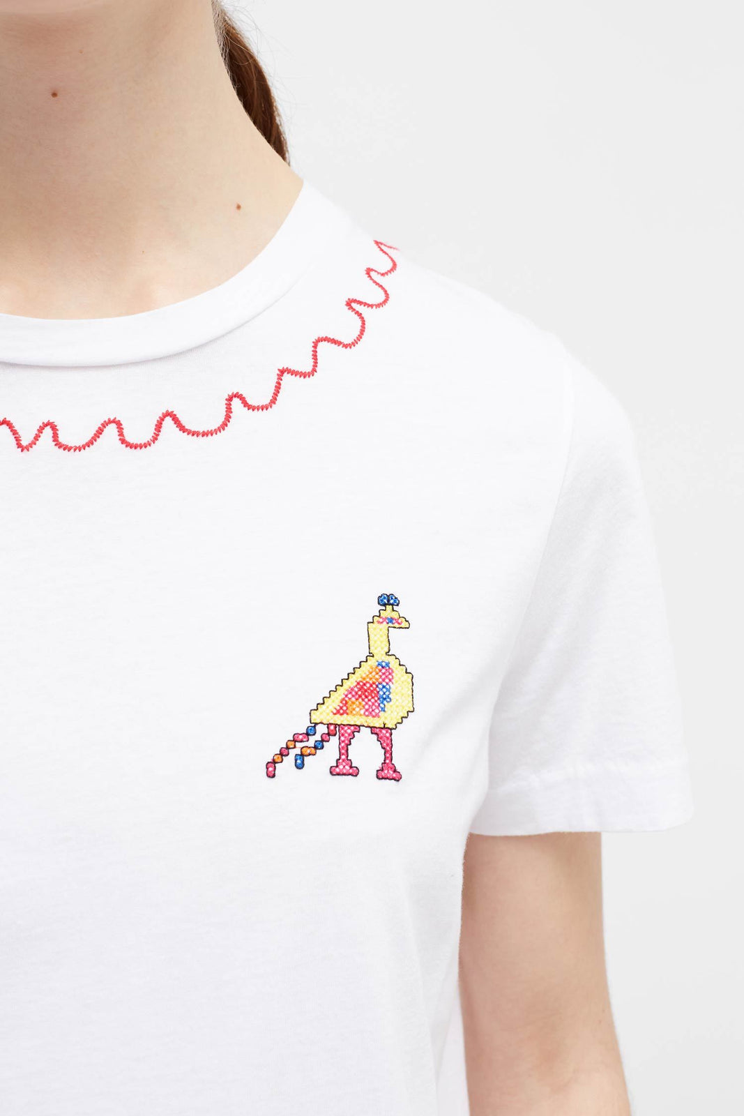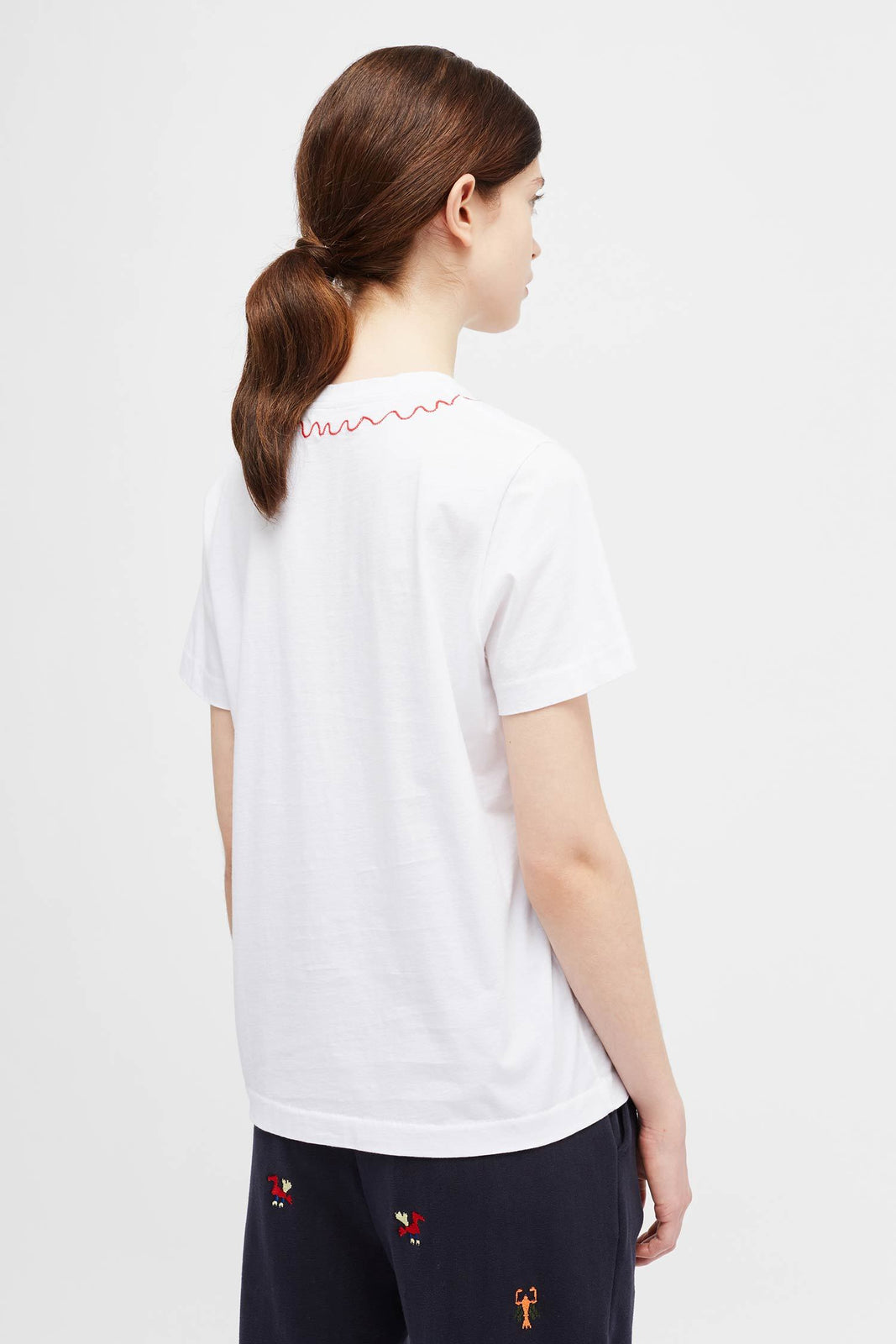 This lightweight white cotton T-shirt is an easy way to wear the season's Mexican spirit. It's shaped for a classic fit with a round neck - note the stitch detail - and finished with a cross-stitched Aztec animal motif at the chest.