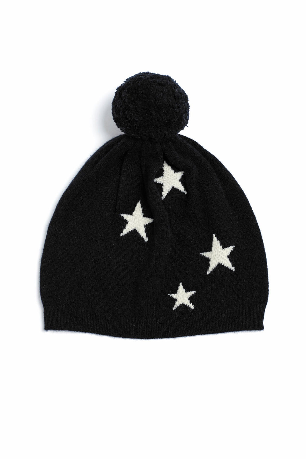 Top off your winter look with this black, 100% cashmere beanie. Showcasing our signature Chinti star intarsia, this pom pom-topped hat is essential for cooler days. Turn up the ribbed edge to fit snuggly to your head or wear rolled down for a slouchier finish.