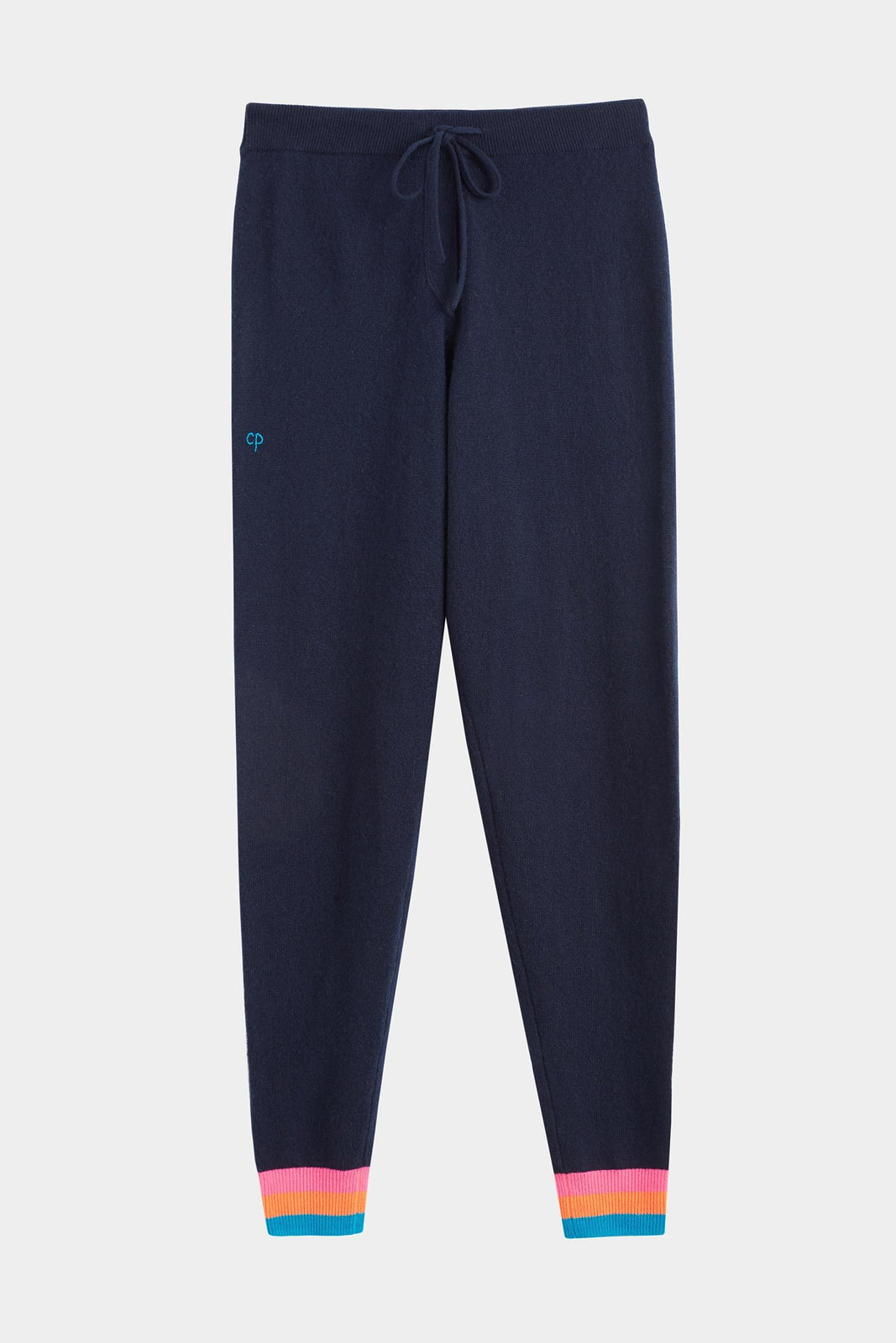 Stay warm this winter with our 100% cashmere navy track pants. With a drawstring and elasticated waist, these classic fit track pants offer endless comfort, and feature an eye-catching multi-coloured stripe cuff trim. Pair with the matching sweater for an easy, on-the-go look.