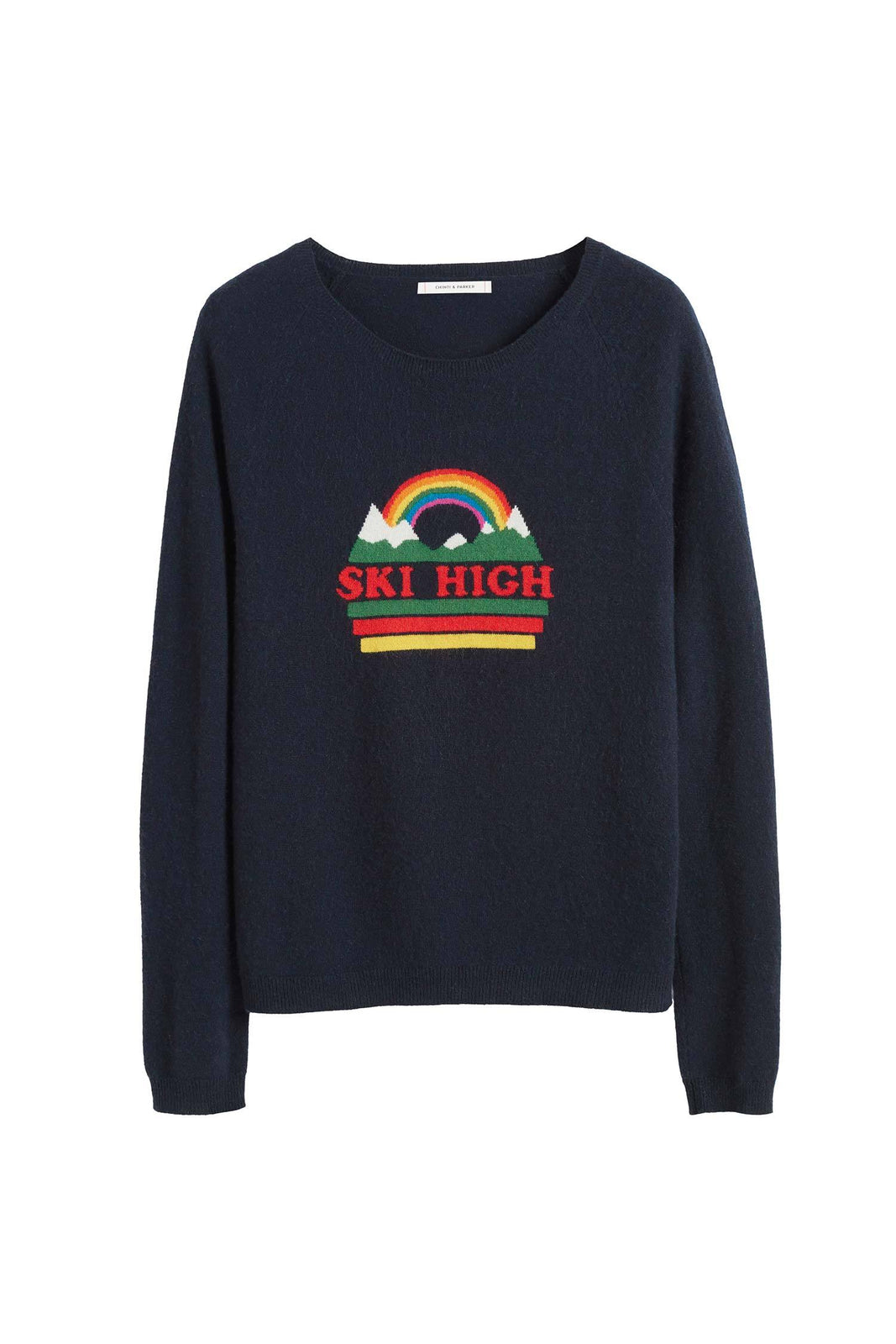 Even on the greyest day the navy wool and cashmere-blend Ski High sweater will give you a little boost. Perfect for the Christmas season the design is cut for a slim fit and features a contrast ribbed trim and vibrant rainbow detailing.