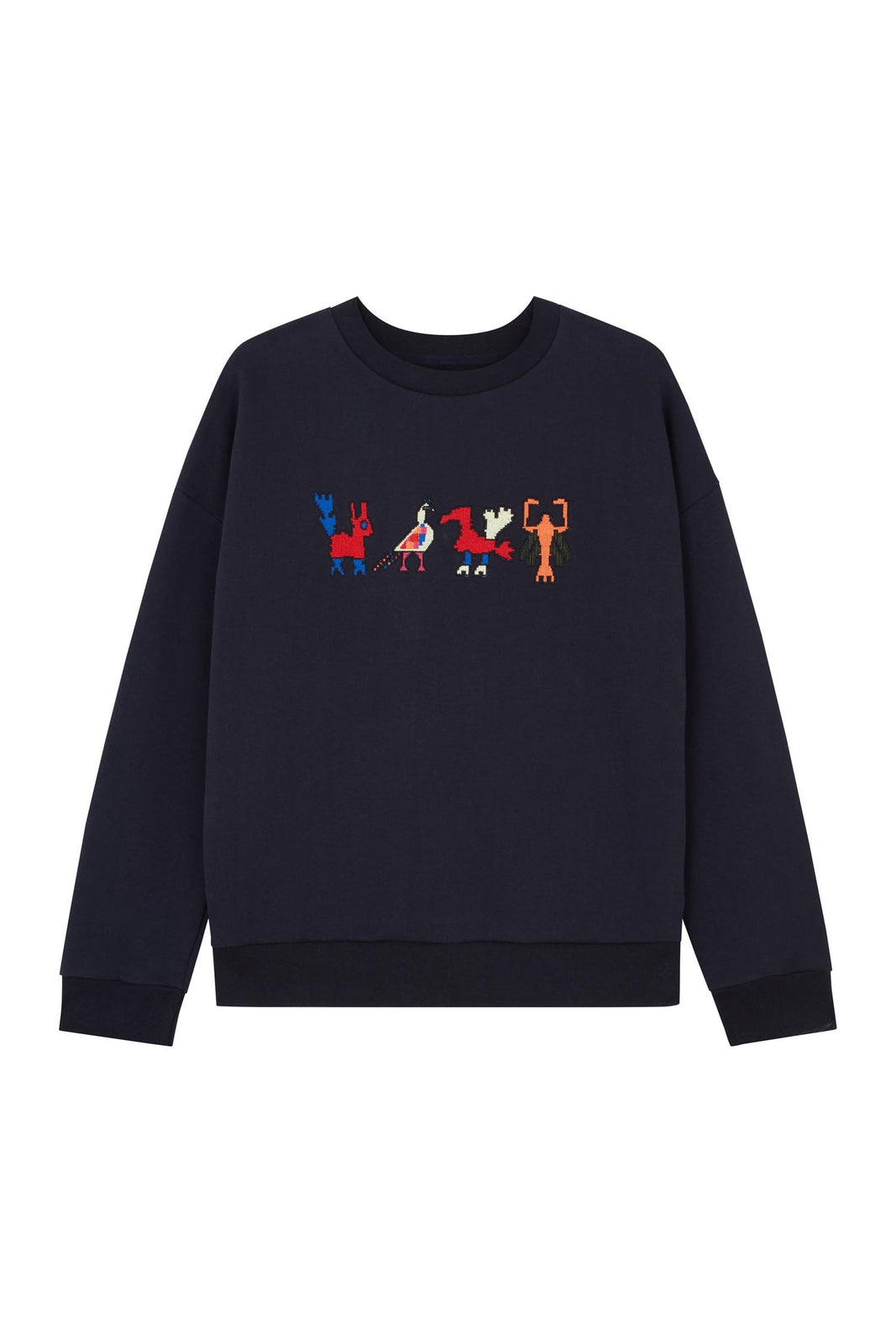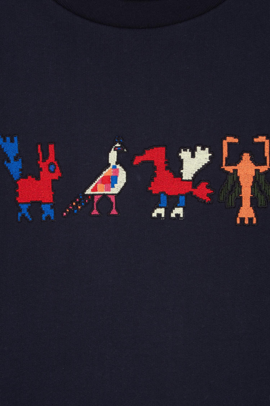 This navy sweatshirt is an easy way to wear the season's key Aztec motifs. It's made from heavy fleece-back cotton to a boxy silhouette with a wide round neck and dropped shoulders and embroidered with vibrant animals inspired by Mexican crafts.