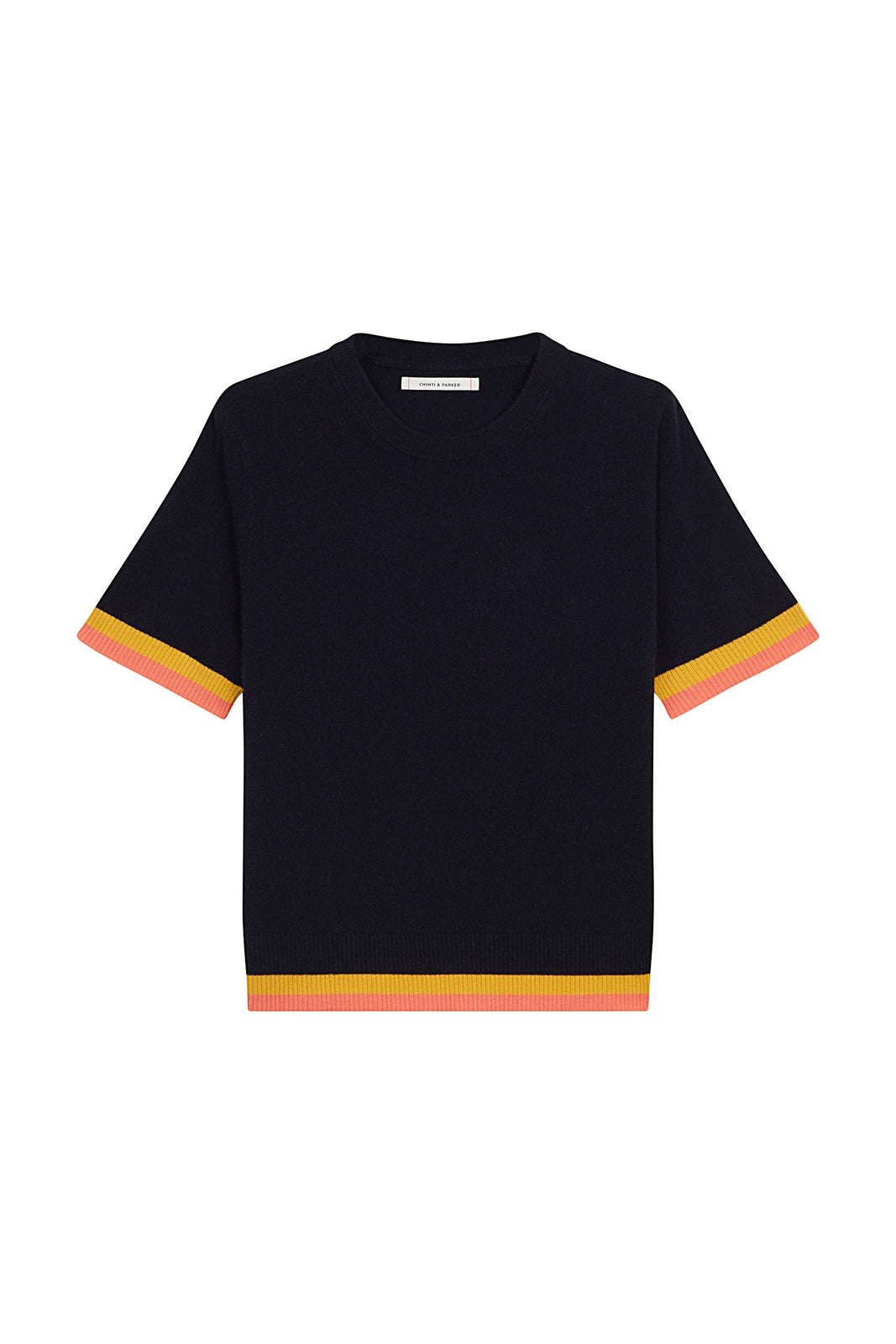 Navy Stripe Trim Cashmere T-Shirt